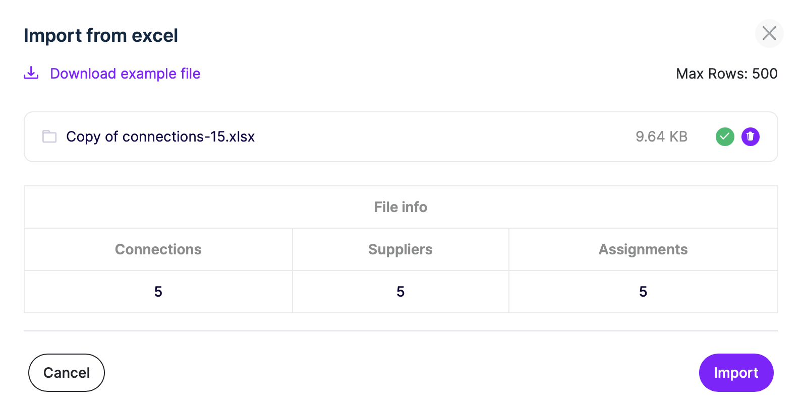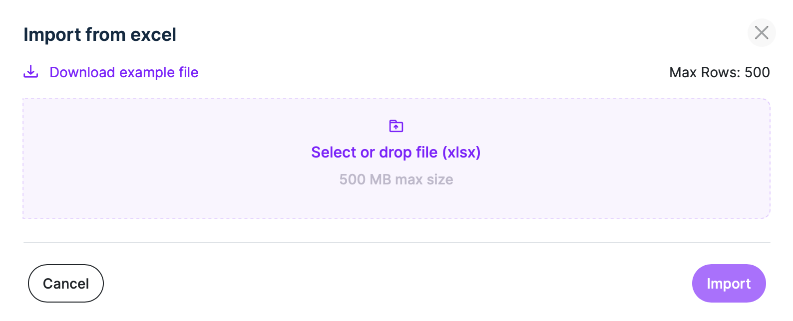 Please make sure that the file contains the same headers as the example file that you can download. The columns cannot be renamed, skipped or moved.