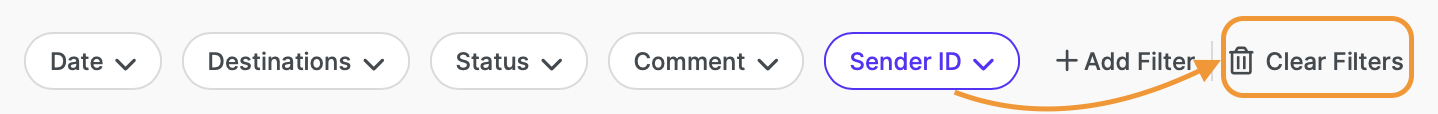 You can select multiple Sender IDs, message texts, destinations, and suppliers in any combination.