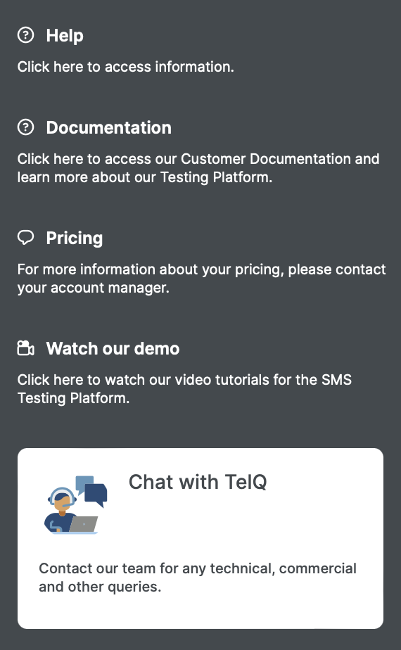 In case you need more information on the page, you can click on the “?” button in the bottom right corner to access our Help, Documentation and Video Tutorials.