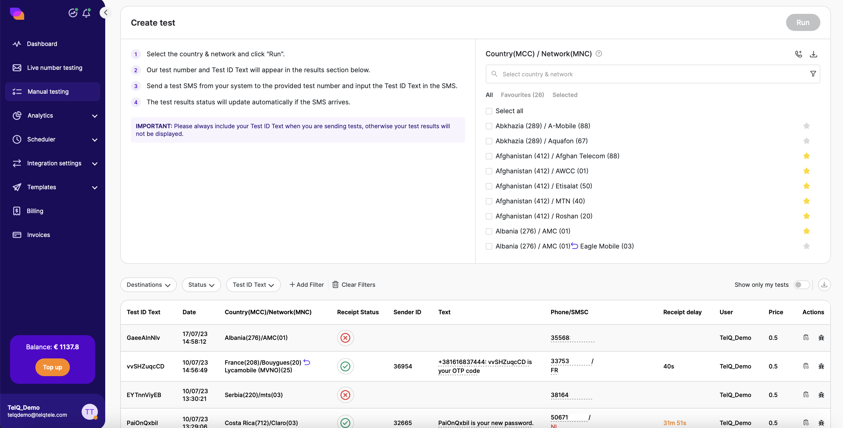 This menu is dedicated exclusively to using our testing platform via API or with no integration. For more information about integration via API, please see API.