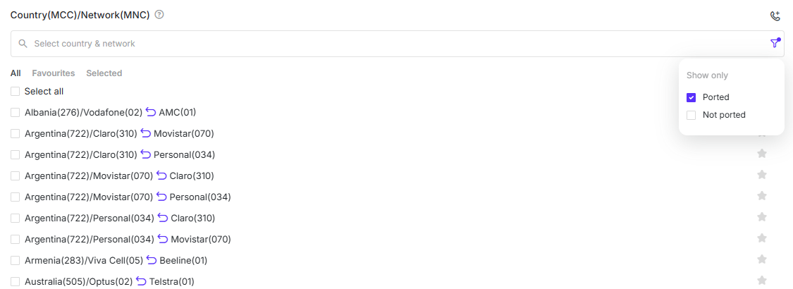 If you need to filter out only the ported or non-ported numbers, you can click on the funnel icon and filter by selecting the corresponding checkbox: