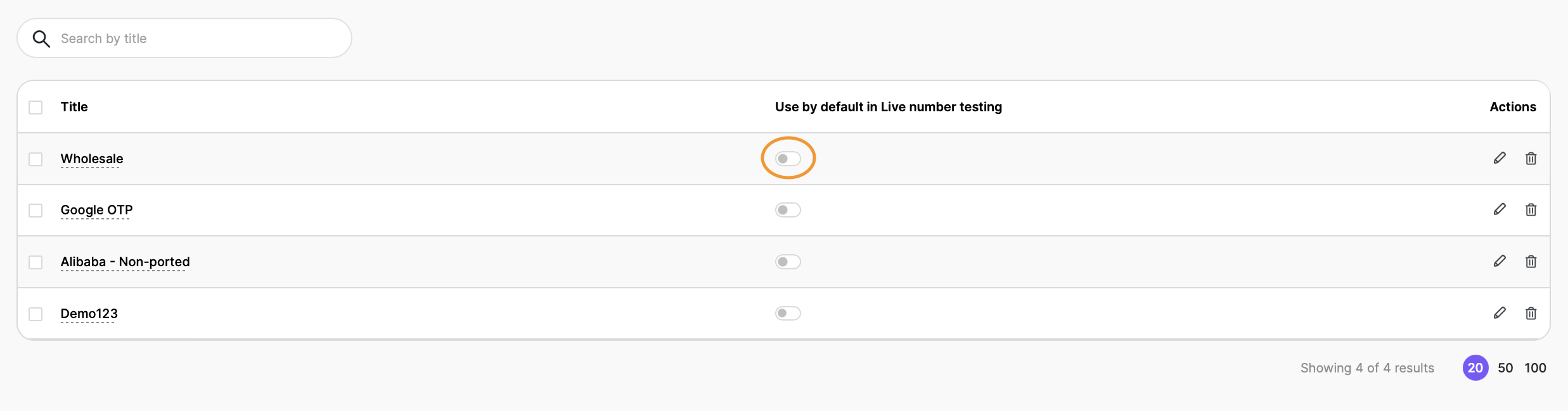 A Test template is a combination of Content template and/or Destinations and Suppliers. You may create Test templates from Live Number Testing and set them up as default so your entries would always be displayed in this page.